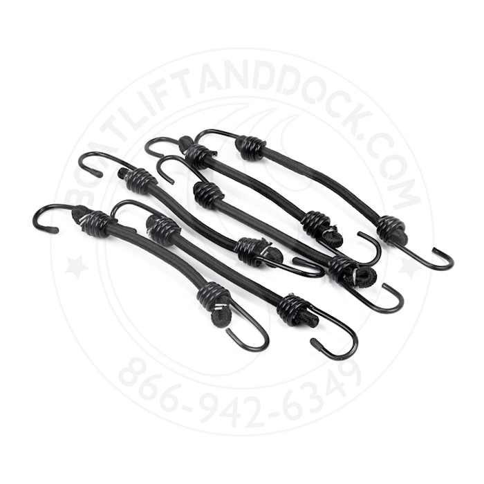 Heavy duty 12" Replacement Craftlander Canopy Cover attaching bungees that are used down the left and right side of the canopy cover. These bungees have a double hook designed and measure 12" from end of hook to end of hook. The bungees are used for securing your canopy cover to the canopy frame.