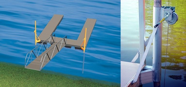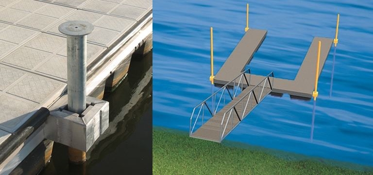 Designed to accommodate changing water levels while helping keep the dock properly positioned.