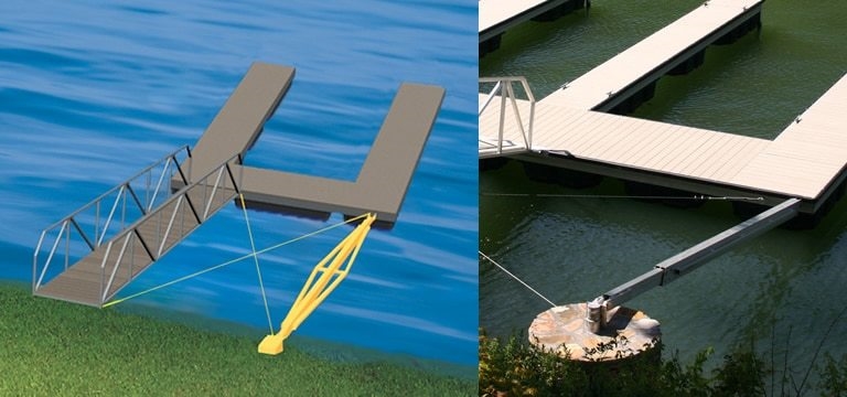 All anchoring systems are selected based on site-specific factors such as water depth, shoreline distance, wave action, seasonal water-level changes, and local permitting requirements.