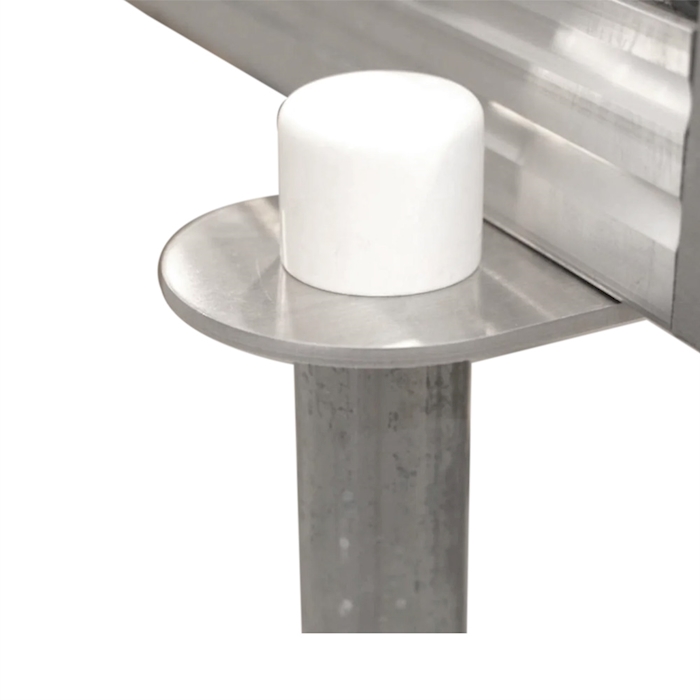 The Modular Ground Anchor is designed for use with modular gangways and comes as a pair, including two posts and rubber caps for the posts. Using a simple pivoting system and small landscaping piles, this system secures gangways on sandy or grassy shorelines, ensuring a safe and stable passage from the dock.